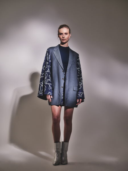 ReBELLE Antwerp_2024_Kimono Blazer Checkered Blue Yellow Flowers_EUR269